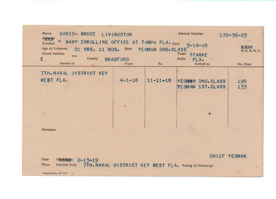 Florida. Military Dept. Bruce Livingston Davis. . State Archives of Florida, Florida Memory. <https://www.floridamemory.com/items/show/219309>, accessed 24 December 2025.