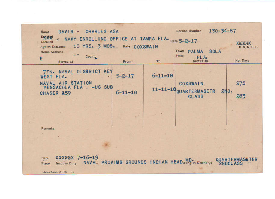 Florida. Military Dept. Charles Asa Davis. . State Archives of Florida, Florida Memory. <https://www.floridamemory.com/items/show/219311>, accessed 24 December 2025.