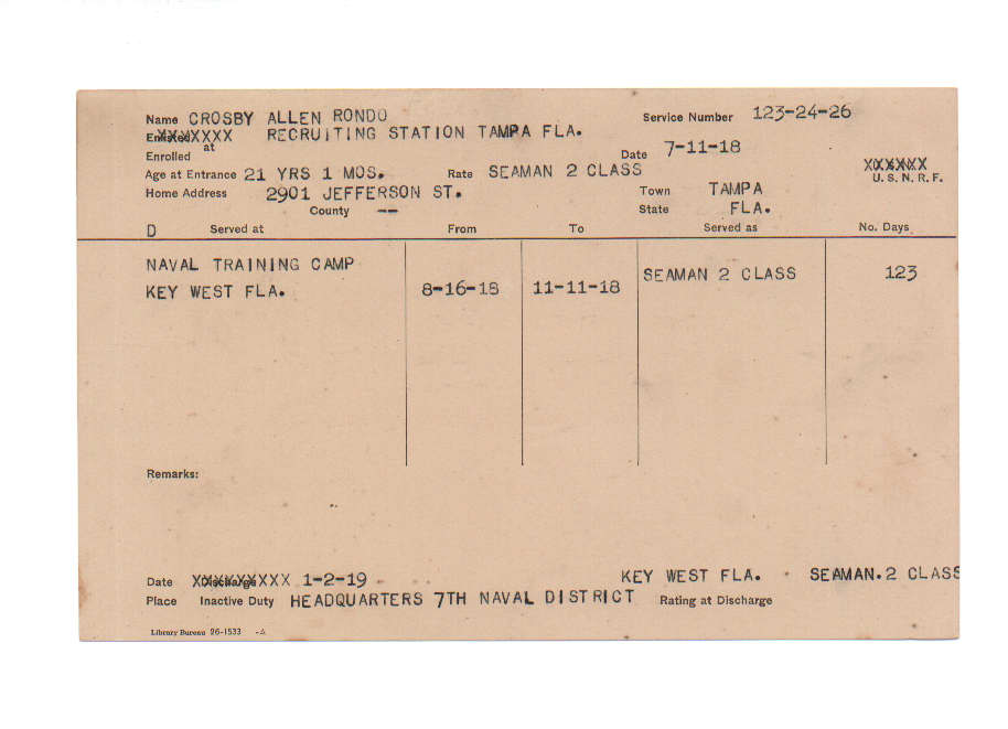 Florida. Military Dept. Allen Rondo Crosby. . State Archives of Florida, Florida Memory. <https://www.floridamemory.com/items/show/219364>, accessed 19 December 2025.