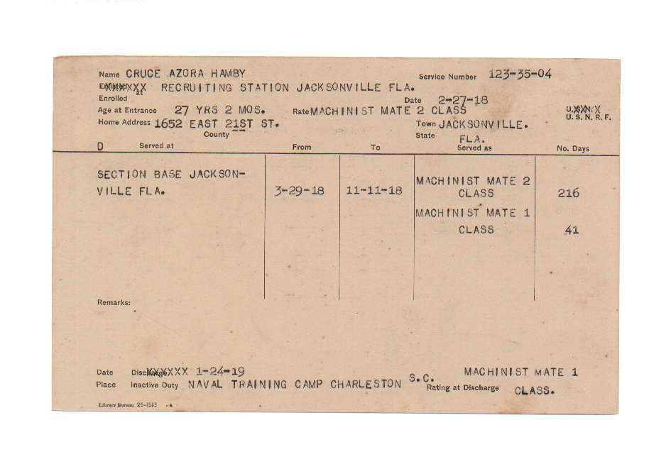 Florida. Military Dept. Azora Hamby Cruce. . State Archives of Florida, Florida Memory. <https://www.floridamemory.com/items/show/219369>, accessed 18 December 2025.