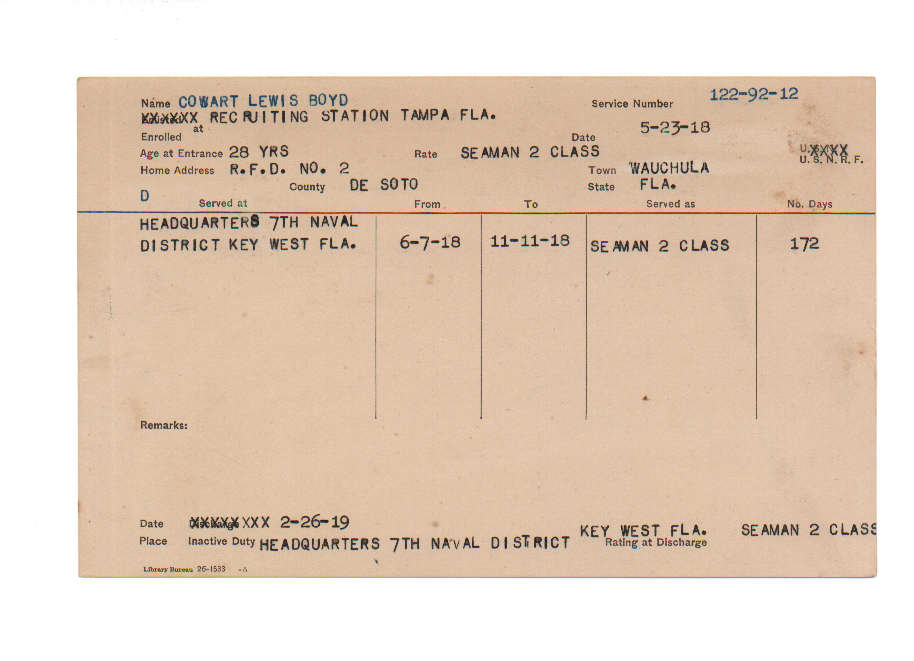 Florida. Military Dept. Lewis Boyd Cowart. . State Archives of Florida, Florida Memory. <https://www.floridamemory.com/items/show/219381>, accessed 6 December 2025.