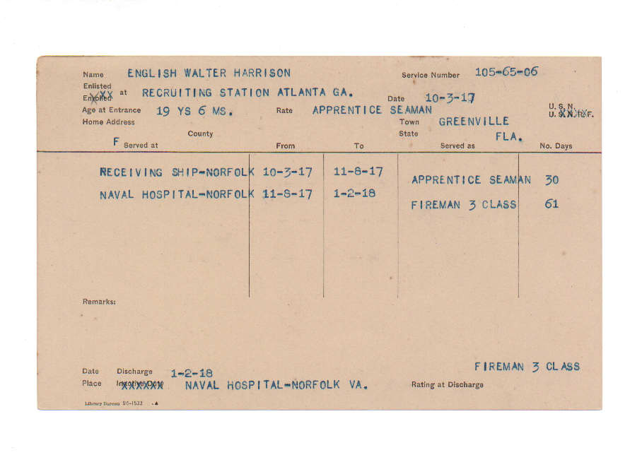 Florida. Military Dept. Walter Harrison English. . State Archives of Florida, Florida Memory. <https://www.floridamemory.com/items/show/219401>, accessed 6 December 2025.