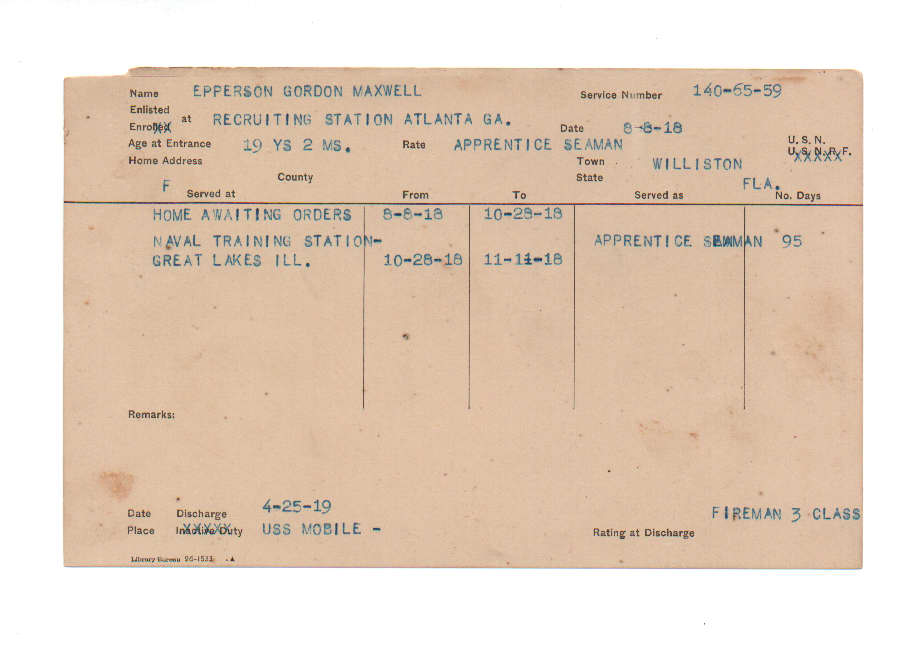 Florida. Military Dept. Gordon Maxwell Epperson. . State Archives of Florida, Florida Memory. <https://www.floridamemory.com/items/show/219404>, accessed 6 December 2025.