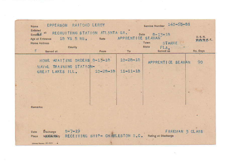 Florida. Military Dept. Raiford Leroy Epperson. . State Archives of Florida, Florida Memory. Accessed 6 Dec. 2025.<https://www.floridamemory.com/items/show/219405>