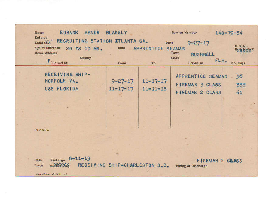 Florida. Military Dept. Abner Blakely Eubank. . State Archives of Florida, Florida Memory. <https://www.floridamemory.com/items/show/219413>, accessed 7 December 2025.