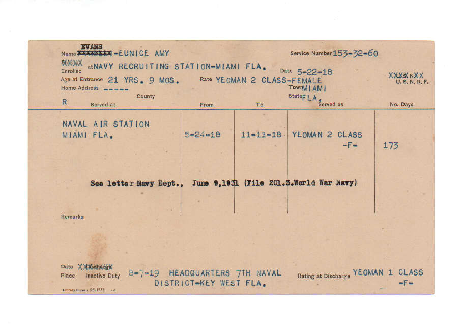 Florida. Military Dept. Eunice Amy Evans. . State Archives of Florida, Florida Memory. <https://www.floridamemory.com/items/show/219416>, accessed 7 December 2025.