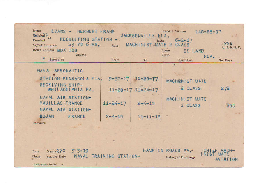 Florida. Military Dept. Herbert Frank Evans. . State Archives of Florida, Florida Memory. <https://www.floridamemory.com/items/show/219417>, accessed 9 December 2025.