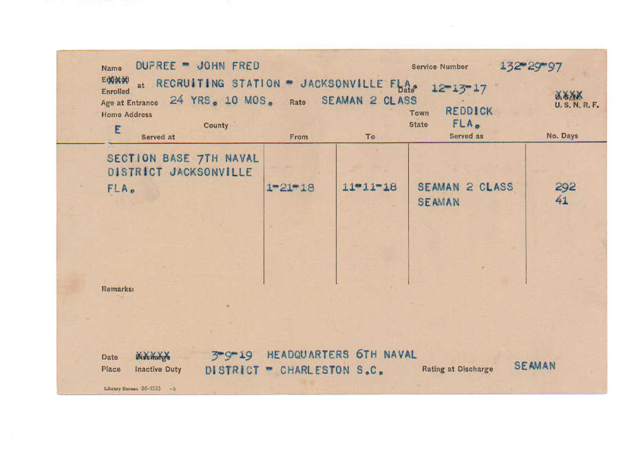 Florida. Military Dept. John Fred Dupree. . State Archives of Florida, Florida Memory. <https://www.floridamemory.com/items/show/219460>, accessed 23 December 2025.