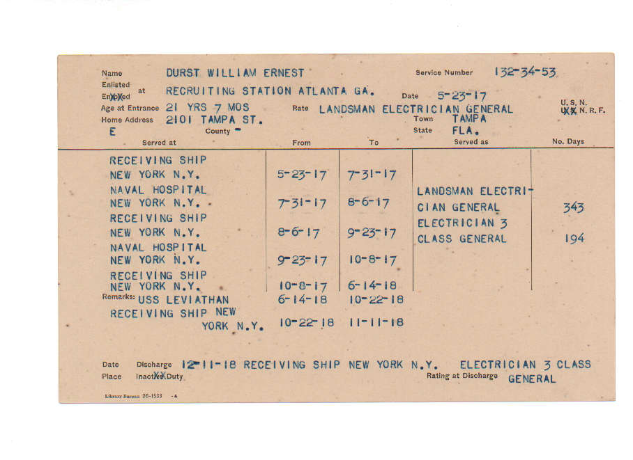 Florida. Military Dept. William Ernest Durst. . State Archives of Florida, Florida Memory. <https://www.floridamemory.com/items/show/219469>, accessed 22 December 2025.