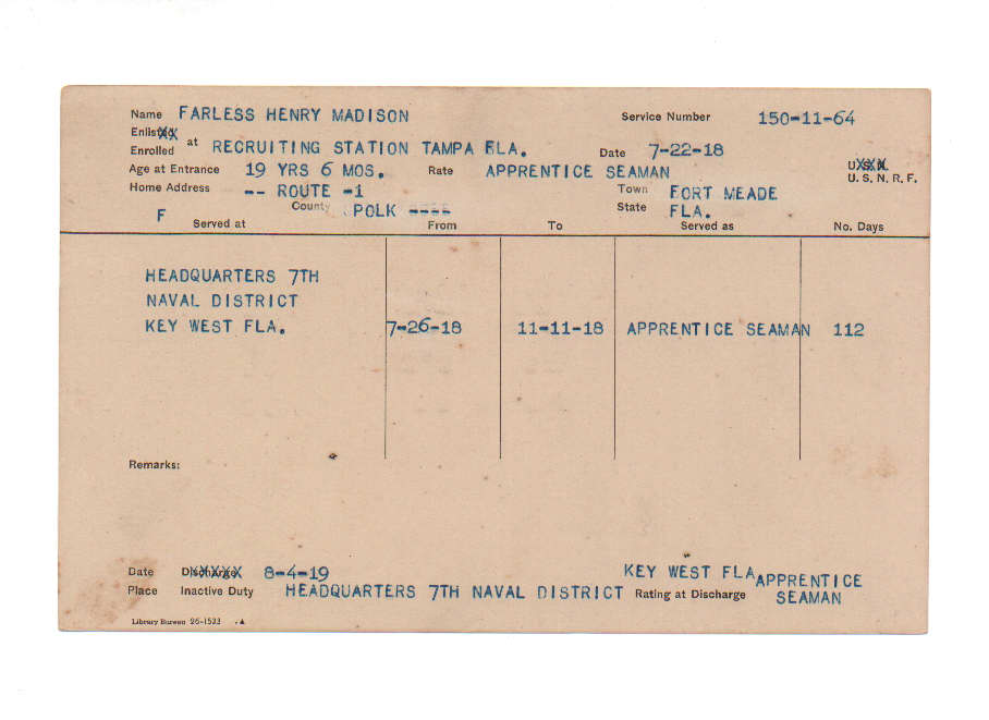 Florida. Military Dept. Henry Madison Farless. . State Archives of Florida, Florida Memory. <https://www.floridamemory.com/items/show/221284>, accessed 17 December 2025.