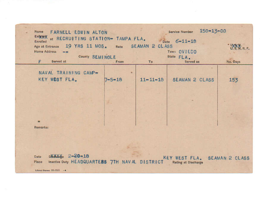 Florida. Military Dept. Edwin Alton Farnell. . State Archives of Florida, Florida Memory. Accessed 16 Dec. 2025.<https://www.floridamemory.com/items/show/221285>