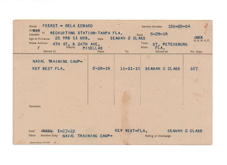 Florida. Military Dept. Bela Edward Feerst. . State Archives of Florida, Florida Memory. <https://www.floridamemory.com/items/show/221301>, accessed 5 December 2025.