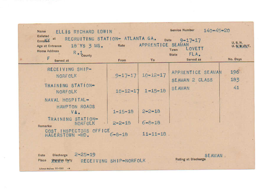 Florida. Military Dept. Richard Edwin Ellis. . State Archives of Florida, Florida Memory. <https://www.floridamemory.com/items/show/221302>, accessed 5 December 2025.