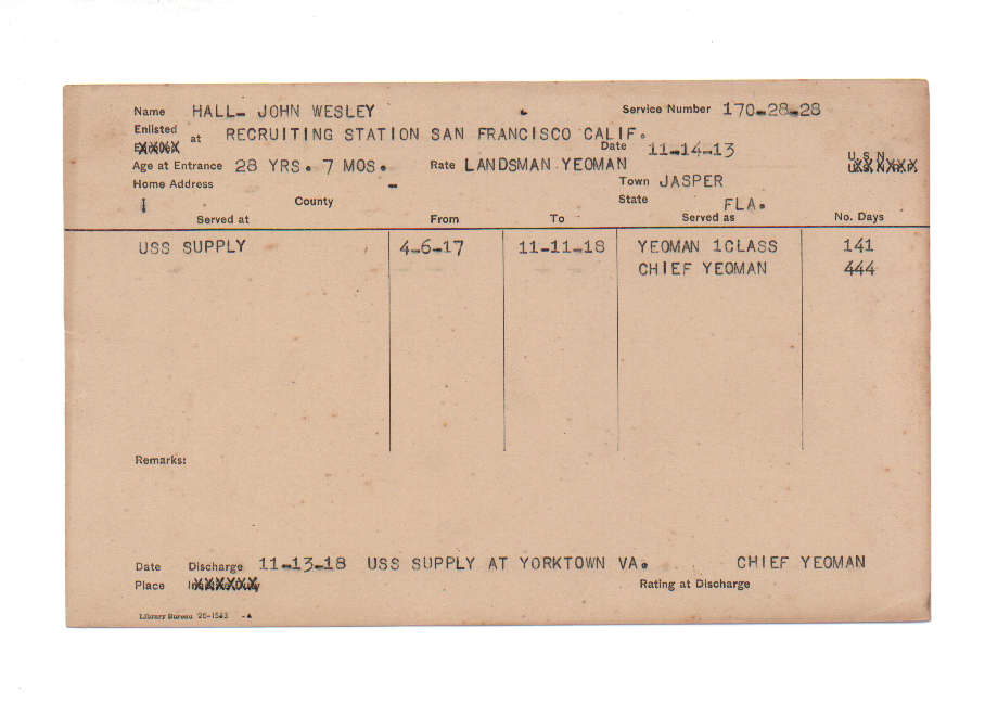 Florida. Military Dept. John Wesley Hall. . State Archives of Florida, Florida Memory. <https://www.floridamemory.com/items/show/221313>, accessed 6 December 2025.