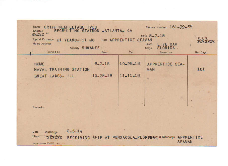 Florida. Military Dept. Milliage Ives Griffin. . State Archives of Florida, Florida Memory. <https://www.floridamemory.com/items/show/221321>, accessed 6 December 2025.