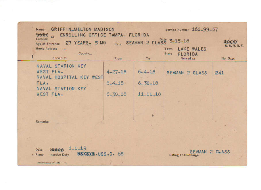 Florida. Military Dept. Milton Madison Griffin. . State Archives of Florida, Florida Memory. <https://www.floridamemory.com/items/show/221322>, accessed 6 December 2025.