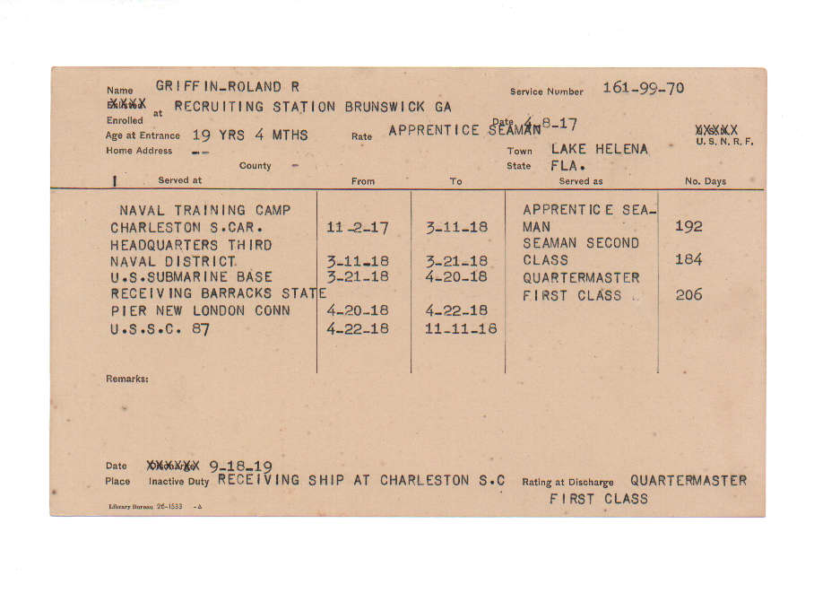 Florida. Military Dept. Roland R Griffin. . State Archives of Florida, Florida Memory. <https://www.floridamemory.com/items/show/221323>, accessed 6 December 2025.