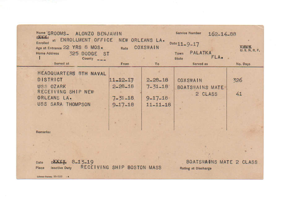 Florida. Military Dept. Alonzo Benjamin Grooms. . State Archives of Florida, Florida Memory. <https://www.floridamemory.com/items/show/221331>, accessed 14 December 2025.