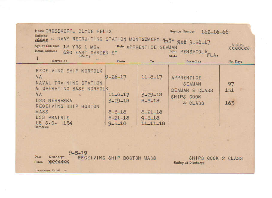 Florida. Military Dept. Clyde Felix Grosskopf. . State Archives of Florida, Florida Memory. Accessed 15 Dec. 2025.<https://www.floridamemory.com/items/show/221333>
