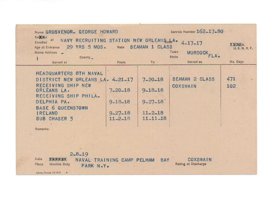 Florida. Military Dept. George Howard Grosvenor. . State Archives of Florida, Florida Memory. <https://www.floridamemory.com/items/show/221334>, accessed 15 December 2025.