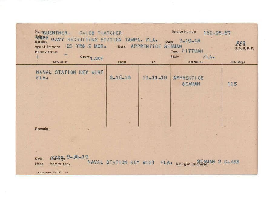 Florida. Military Dept. Caleb Thatcher Guenther. . State Archives of Florida, Florida Memory. <https://www.floridamemory.com/items/show/221337>, accessed 16 December 2025.