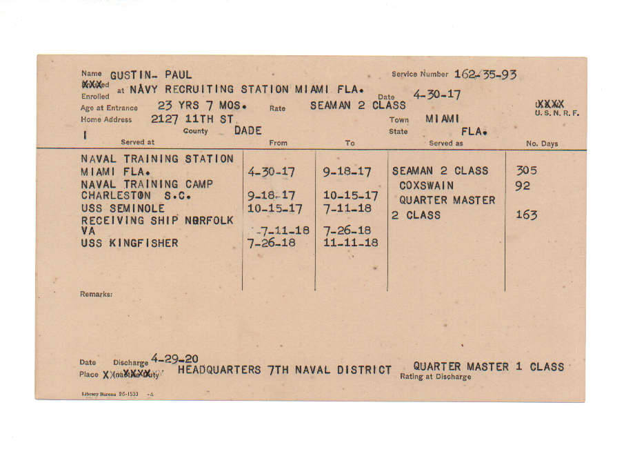 Florida. Military Dept. Paul Gustin. . State Archives of Florida, Florida Memory. <https://www.floridamemory.com/items/show/221343>, accessed 19 December 2025.