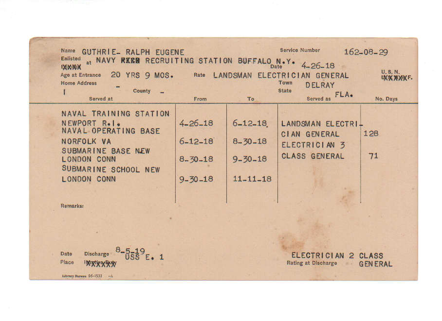 Florida. Military Dept. Ralph Eugene Guthrie. . State Archives of Florida, Florida Memory. <https://www.floridamemory.com/items/show/221345>, accessed 19 December 2025.