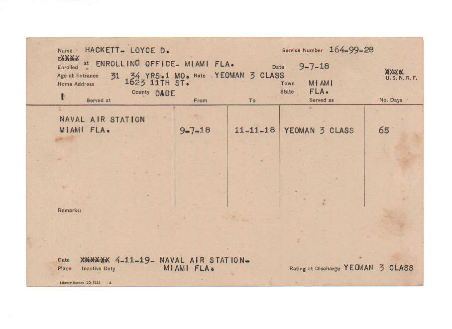 Florida. Military Dept. Loyce D Hackett. . State Archives of Florida, Florida Memory. Accessed 19 Dec. 2025.<https://www.floridamemory.com/items/show/221348>