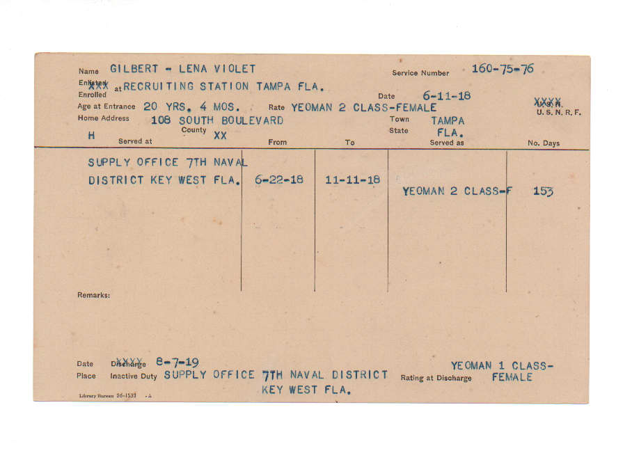 Florida. Military Dept. Lena Violet Gilbert. . State Archives of Florida, Florida Memory. <https://www.floridamemory.com/items/show/221464>, accessed 6 December 2025.