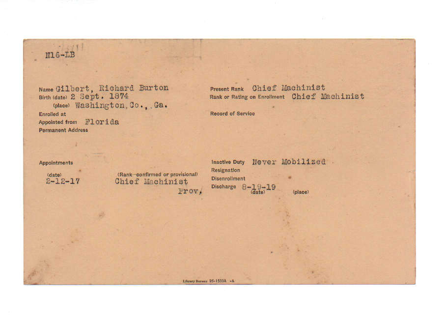 Florida. Military Dept. Richard Burton Gilbert. . State Archives of Florida, Florida Memory. <https://www.floridamemory.com/items/show/221466>, accessed 6 December 2025.