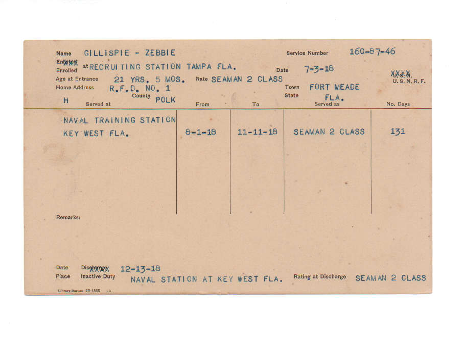 Florida. Military Dept. Zebbie Gillispie. . State Archives of Florida, Florida Memory. <https://www.floridamemory.com/items/show/221472>, accessed 15 December 2025.