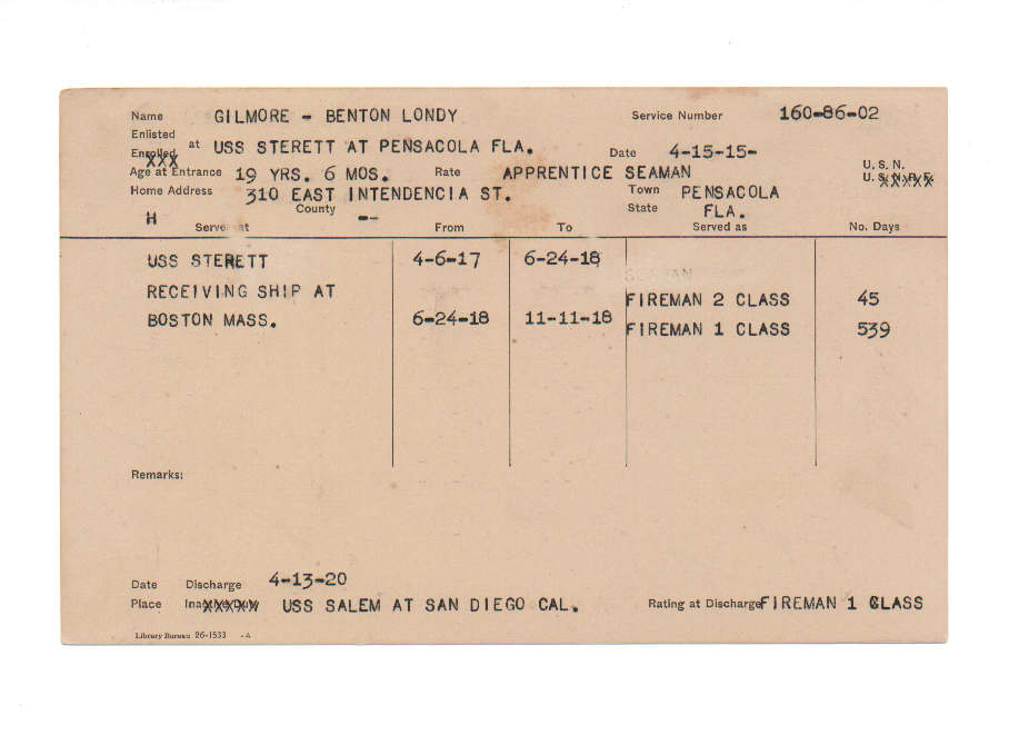 Florida. Military Dept. Benton Londy Gilmore. . State Archives of Florida, Florida Memory. <https://www.floridamemory.com/items/show/221474>, accessed 16 December 2025.