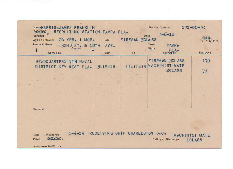 Florida. Military Dept. James Franklin Harris. . State Archives of Florida, Florida Memory. <https://www.floridamemory.com/items/show/221661>, accessed 5 December 2025.