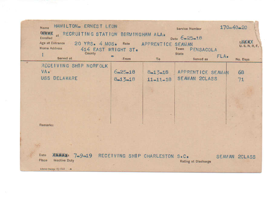 Florida. Military Dept. Ernest Leon Hamilton. . State Archives of Florida, Florida Memory. Accessed 6 Dec. 2025.<https://www.floridamemory.com/items/show/221669>