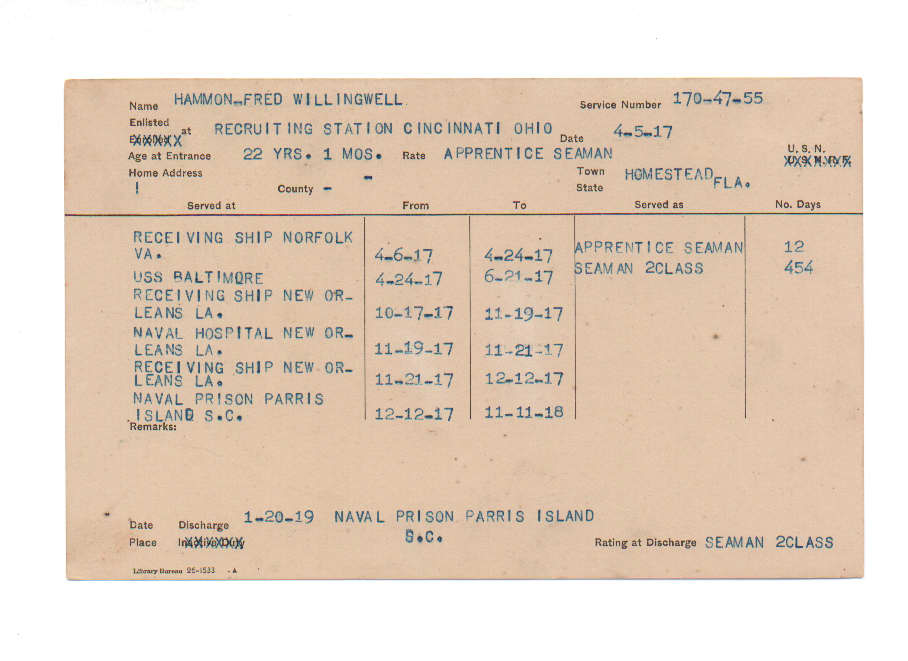 Florida. Military Dept. Fred Willingwell Hammon. . State Archives of Florida, Florida Memory. <https://www.floridamemory.com/items/show/221675>, accessed 6 December 2025.