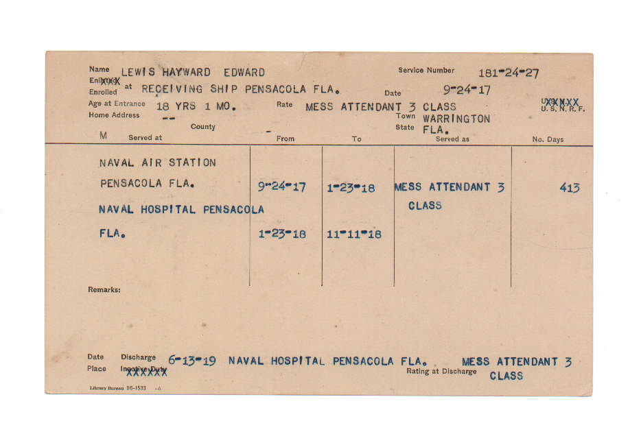 Florida. Military Dept. Hayward Edward Lewis. . State Archives of Florida, Florida Memory. <https://www.floridamemory.com/items/show/224645>, accessed 6 December 2025.