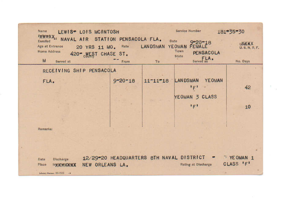 Florida. Military Dept. Lois McIntosh Lewis. . State Archives of Florida, Florida Memory. <https://www.floridamemory.com/items/show/224648>, accessed 6 December 2025.