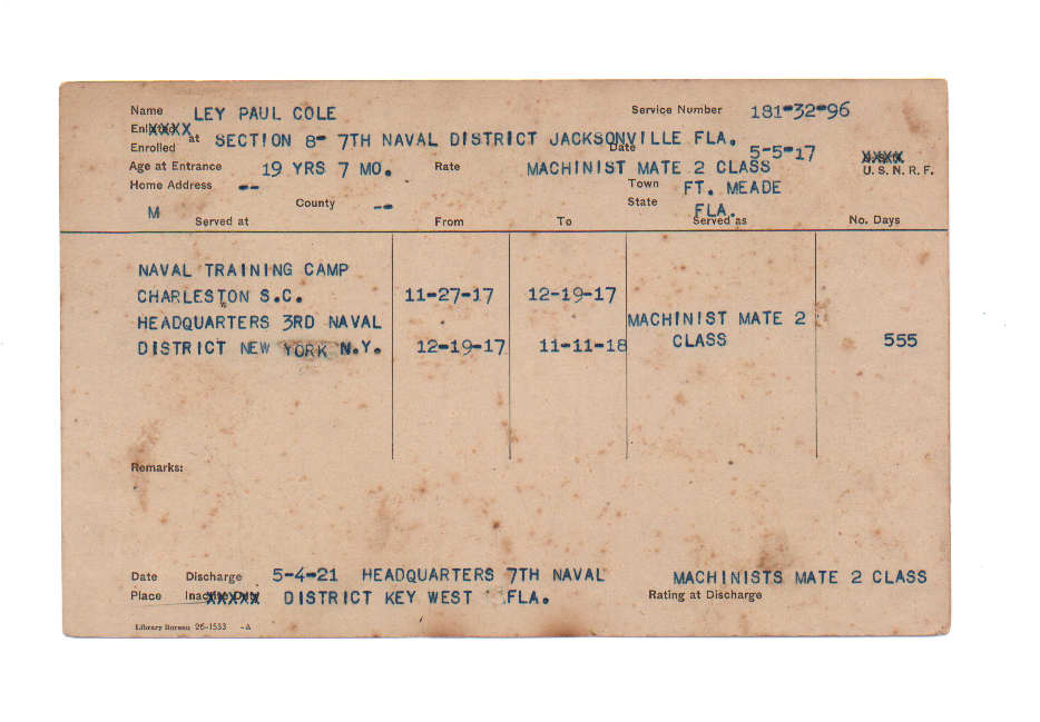 Florida. Military Dept. Paul Cole Ley. . State Archives of Florida, Florida Memory. <https://www.floridamemory.com/items/show/224656>, accessed 6 December 2025.