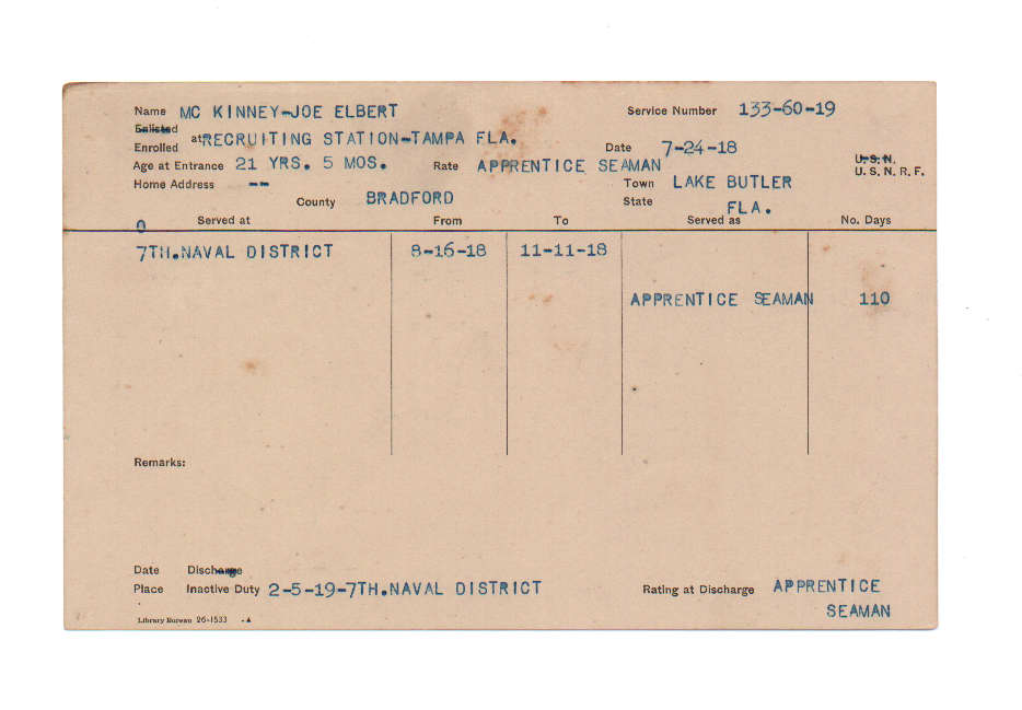 Florida. Military Dept. Joe Elbert Mc Kinney. . State Archives of Florida, Florida Memory. <https://www.floridamemory.com/items/show/224671>, accessed 16 December 2025.
