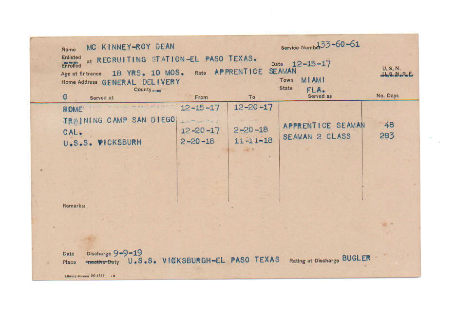 Florida. Military Dept. Roy Dean Mc Kinney. . State Archives of Florida, Florida Memory. <https://www.floridamemory.com/items/show/224673>, accessed 18 December 2025.