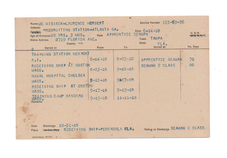 Florida. Military Dept. Laurence Herbert Mc Kissick. . State Archives of Florida, Florida Memory. <https://www.floridamemory.com/items/show/224677>, accessed 19 December 2025.