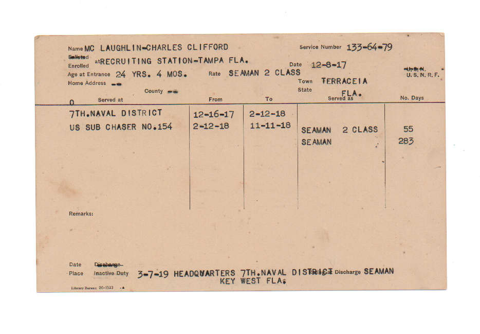 Florida. Military Dept. Charles Clifford Mc Laughlin. . State Archives of Florida, Florida Memory. <https://www.floridamemory.com/items/show/224678>, accessed 19 December 2025.