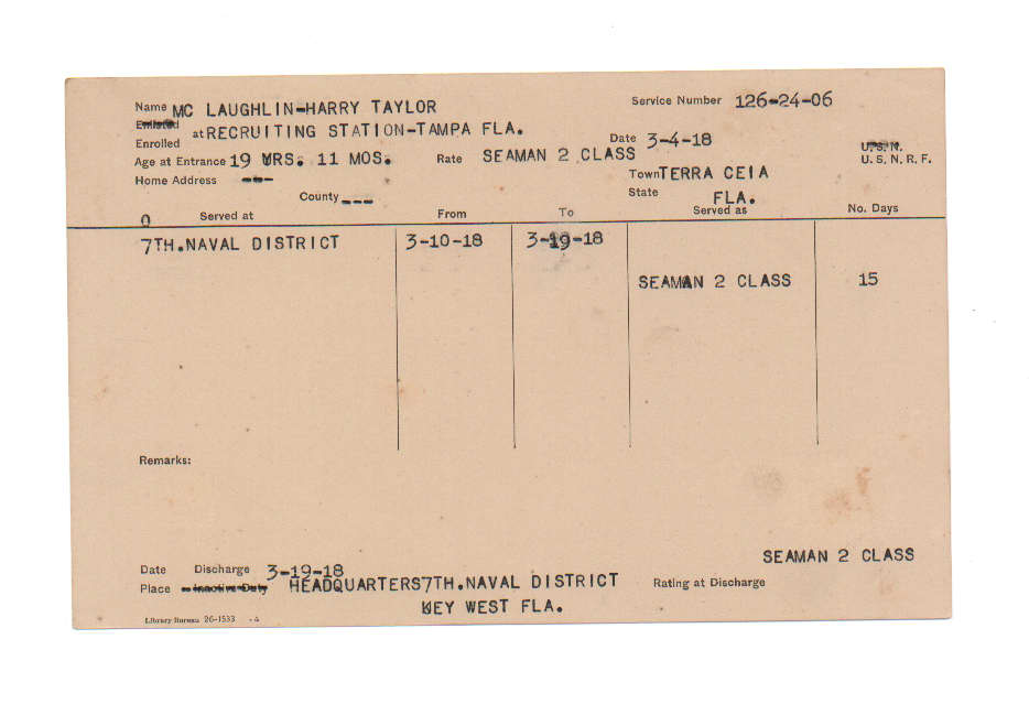 Florida. Military Dept. Harry Taylor Mc Laughlin. . State Archives of Florida, Florida Memory. <https://www.floridamemory.com/items/show/224679>, accessed 19 December 2025.