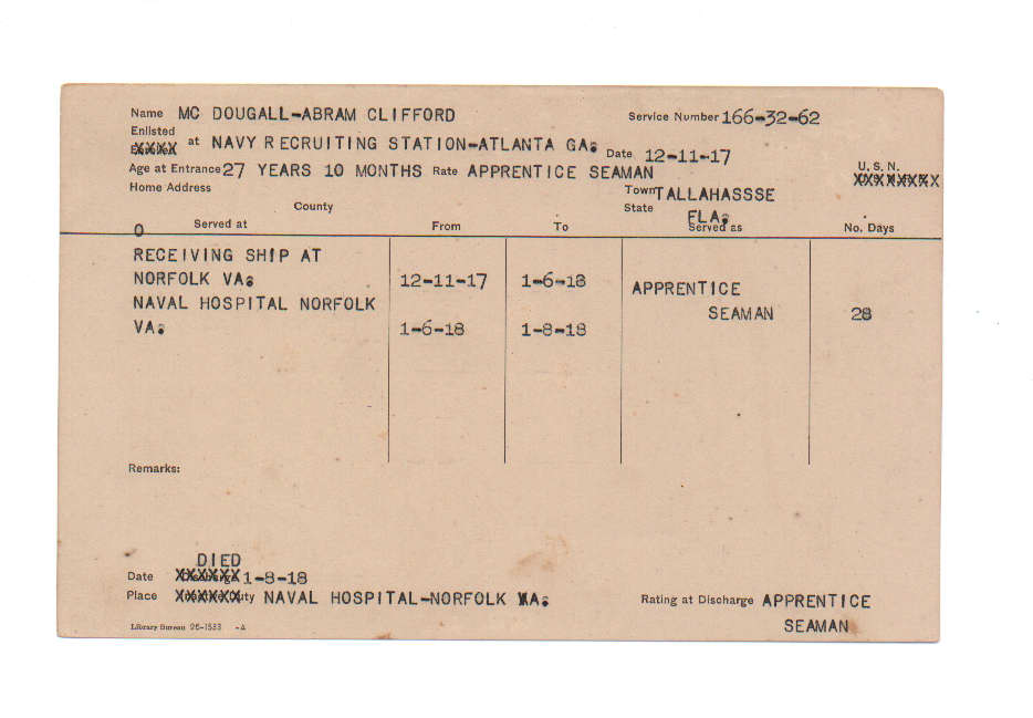 Florida. Military Dept. Abram Clifford Mc Dougall. . State Archives of Florida, Florida Memory. <https://www.floridamemory.com/items/show/224687>, accessed 21 December 2025.