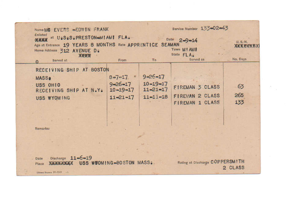 Florida. Military Dept. Edwin Frank Mc Evers. . State Archives of Florida, Florida Memory. <https://www.floridamemory.com/items/show/224695>, accessed 21 December 2025.