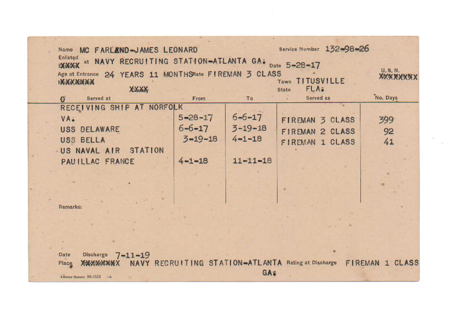 Florida. Military Dept. James Leonard Mc Farland. . State Archives of Florida, Florida Memory. <https://www.floridamemory.com/items/show/224700>, accessed 22 December 2025.