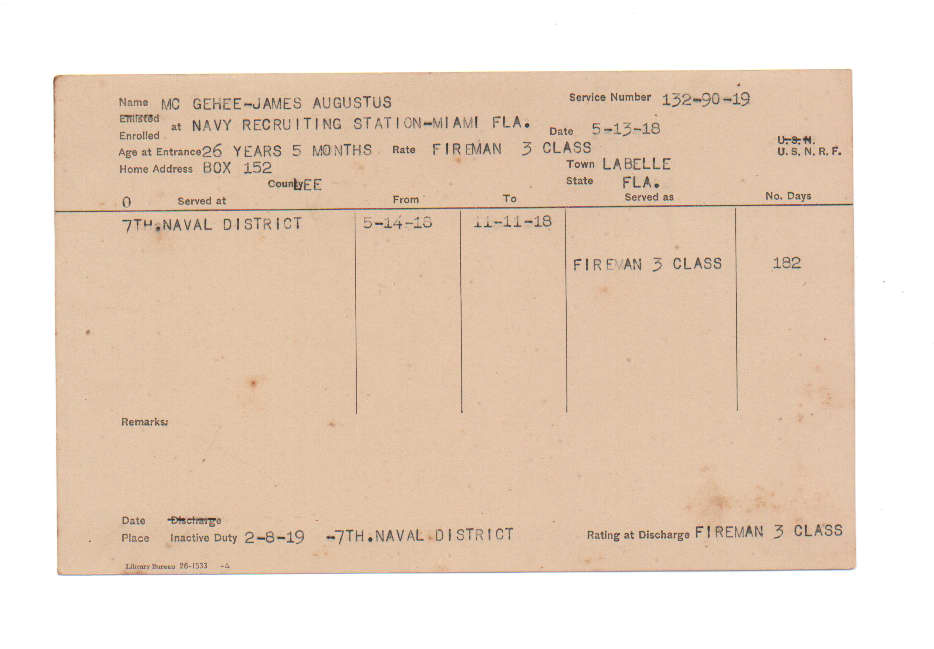 Florida. Military Dept. James Augustus Mc Gehee. . State Archives of Florida, Florida Memory. <https://www.floridamemory.com/items/show/224707>, accessed 22 December 2025.