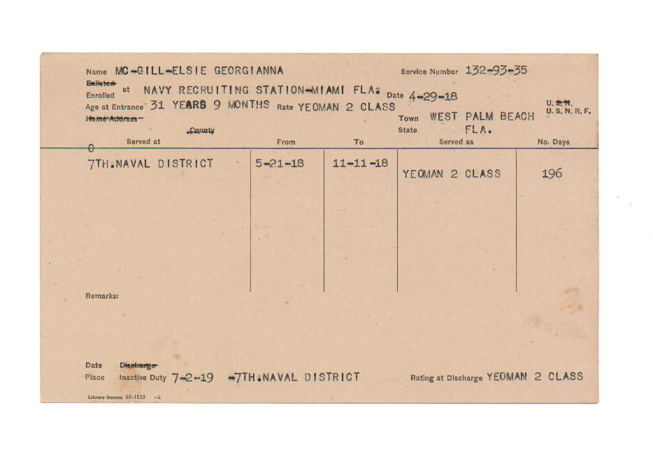Florida. Military Dept. Elsie Georgianna Mc Gill. . State Archives of Florida, Florida Memory. <https://www.floridamemory.com/items/show/224710>, accessed 22 December 2025.