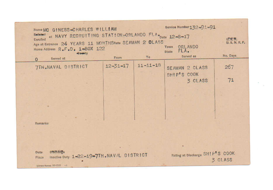Florida. Military Dept. Charles William Mc Giness. . State Archives of Florida, Florida Memory. <https://www.floridamemory.com/items/show/224712>, accessed 22 December 2025.