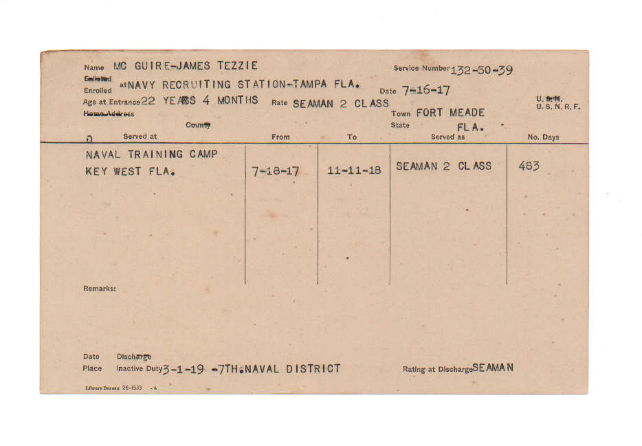 Florida. Military Dept. James Tezzie McGuire. . State Archives of Florida, Florida Memory. <https://www.floridamemory.com/items/show/224715>, accessed 23 December 2025.